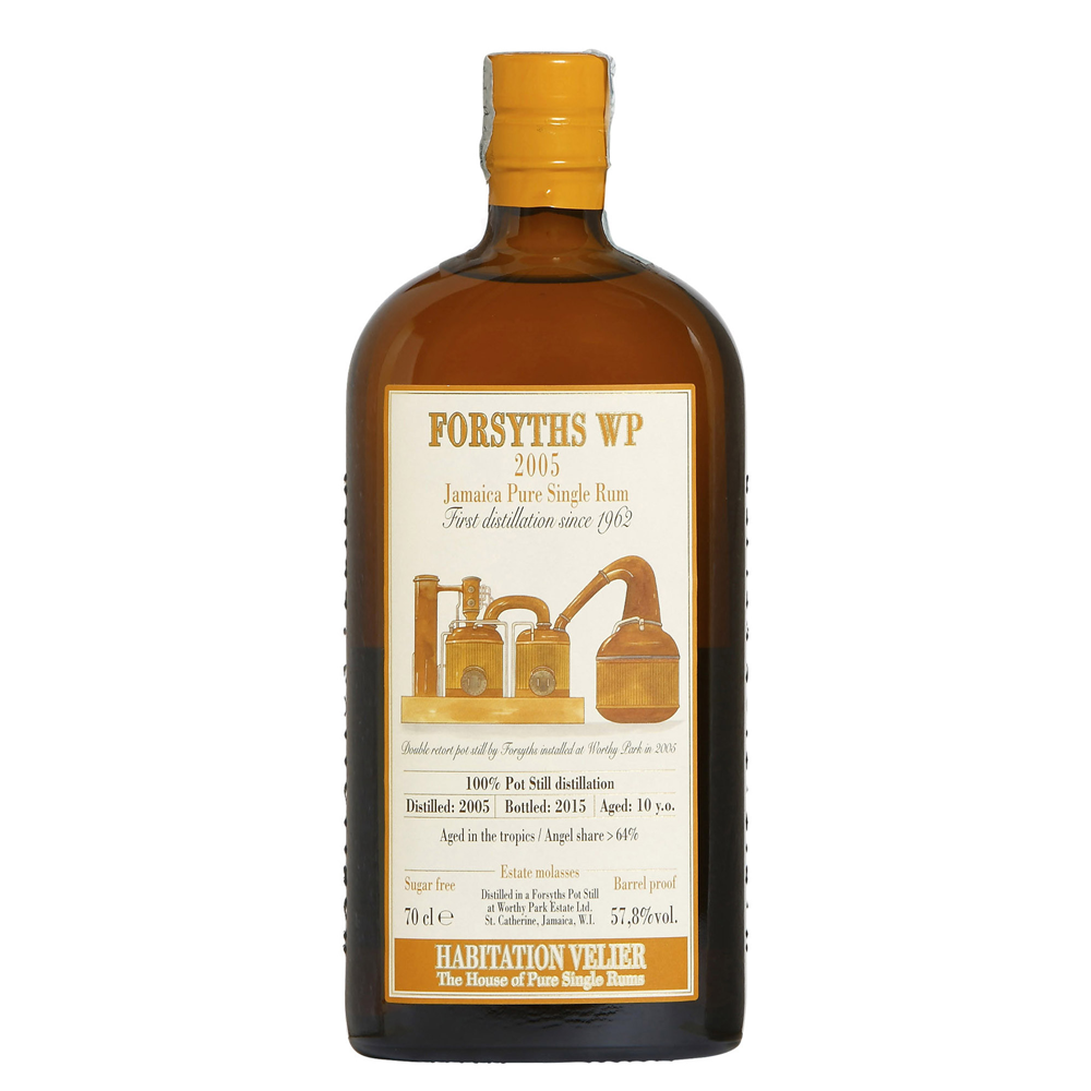 La sigla WP identifica la distilleria, mentre il riferimento Forsyths indica gli alambicchi in rame a doppia retorta costruiti dalla celebre azienda scozzese Forsyths, fondamentali per la concentrazione aromatica tipica dello stile jamaicano.